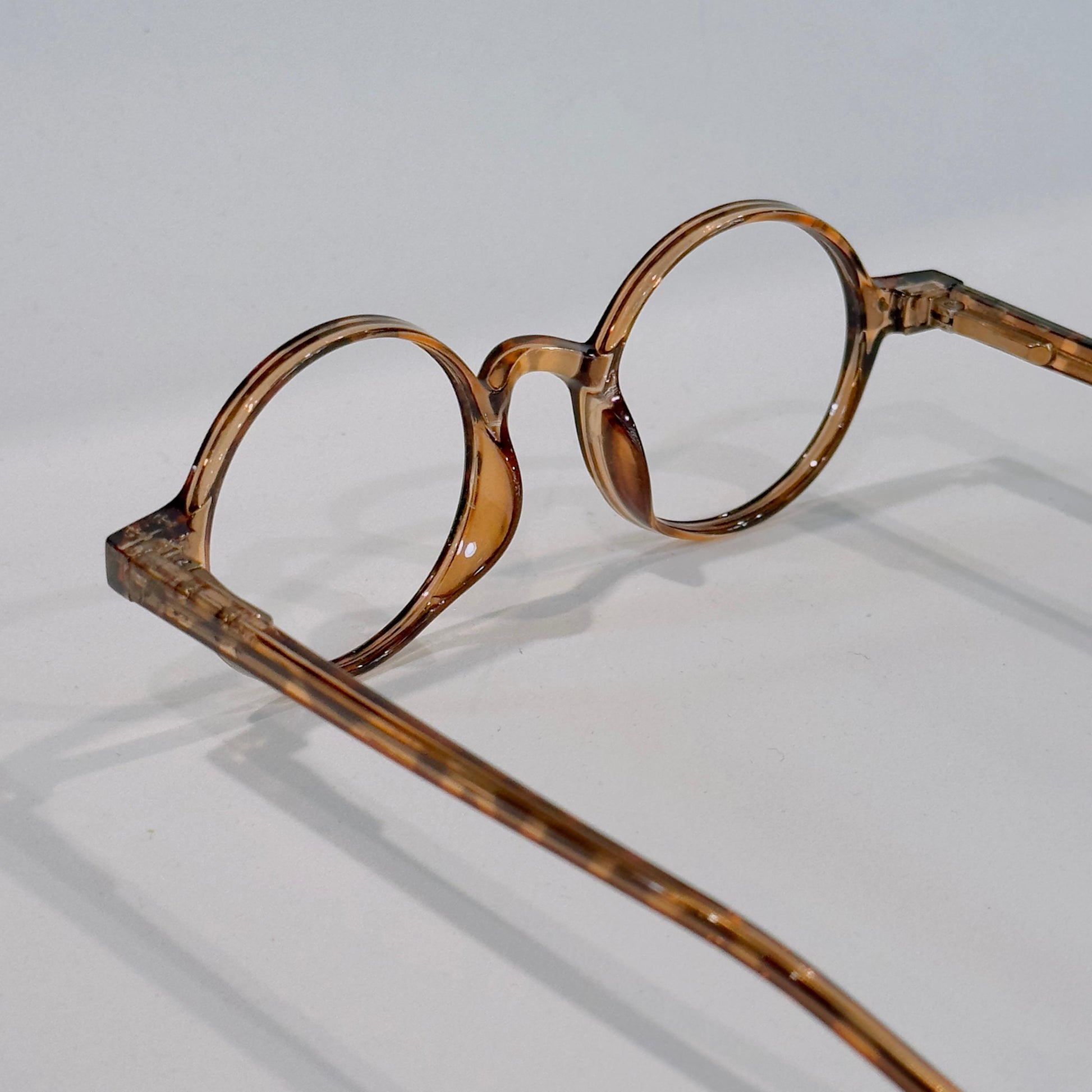 Un armazón redondo en acabado carey café claro, perfecto para quienes buscan un look artístico y con personalidad vintage. Su diseño atemporal se reinventa en un estilo moderno, cómodo y lleno de carácter.