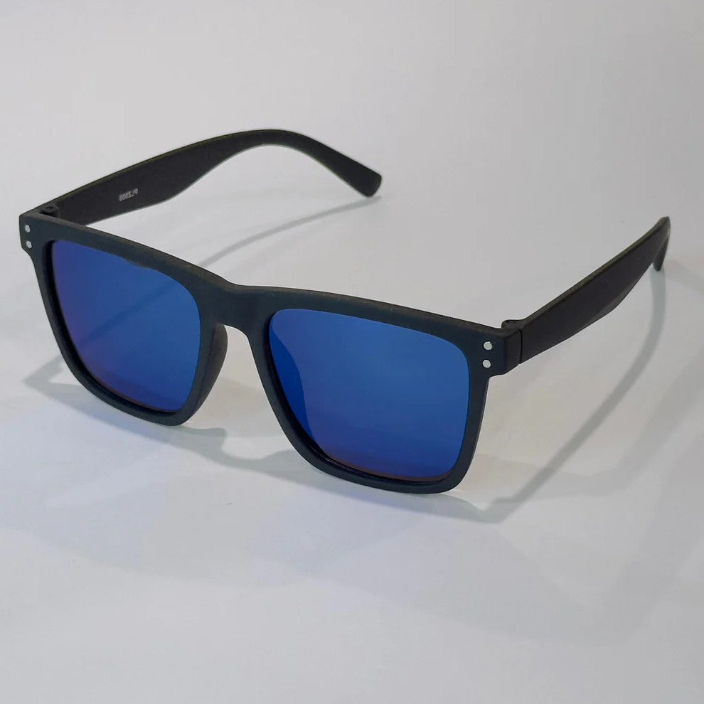 Este modelo combina una montura negra mate con lentes espejados en azul, creando un look sofisticado y moderno. Diseñados para ofrecer máxima protección y comodidad, son ideales para cualquier ocasión, ya sea en la ciudad o en la playa.